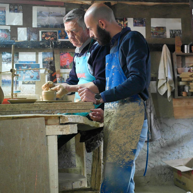 Bilecik ili Pazaryeri ilçesi Kınık Köyü’nde el tornası ile ürettiğimiz fincan ve cezvemiz, ilk pişim sonrası sadece iç kısımları sırlanarak, ikinci pişimle birlikte ömür boyu kullanabileceğiniz formu almaktadır. Bu serüvende Kültür ve Turizm Bakanlığı devlet sanatçısı Nazmi Ceyhan ve çırağı Ufuk Yıldız size, geleneksel el sanatlarından çömlekçiliği en kibar, doğal ve sade haliyle Kınık Serisinde buluşturuyor.