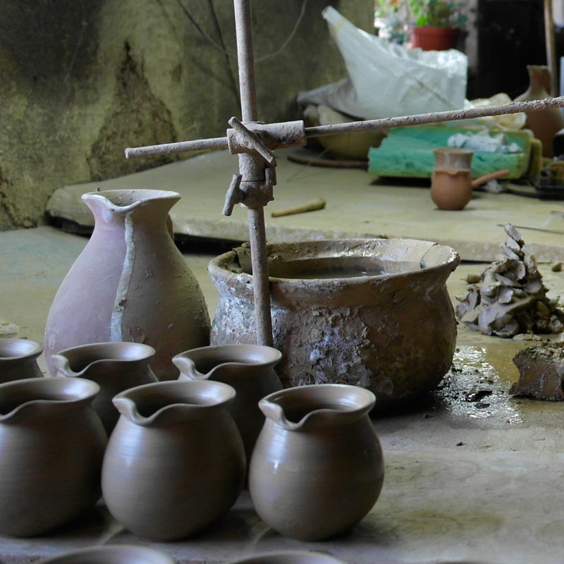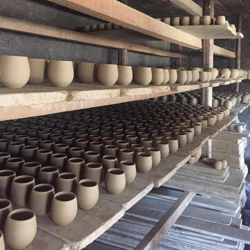 El tornası ve çift pişirme tekniği ile son halini alan fincan ve cezvemiz, ilk pişim sonrası sadece iç kısmı sırlanarak, ikinci pişimle birlikte ömür boyu kullanabileceğiniz formu almaktadır. Bu detayları belirtmemizdeki gayemiz, her çömleğin aynı tekniğe, işçiliğe ve toprak kalitesine sahip olmamasındandır.